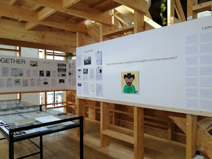 GN: Klopt. Ik heb een sectie in het archief ontworpen getiteld Future Thinking, met meer informatie over commoning en wat er wereldwijd gebeurt onder inheemse groepen die vechten voor hun landrechten. Maar er is ook een stukje waar ik mensen de vraag stelde wat de beste manier is voor mensen om samen te leven. Je kon je antwoord op een stukje papier schrijven en het daar achterlaten.