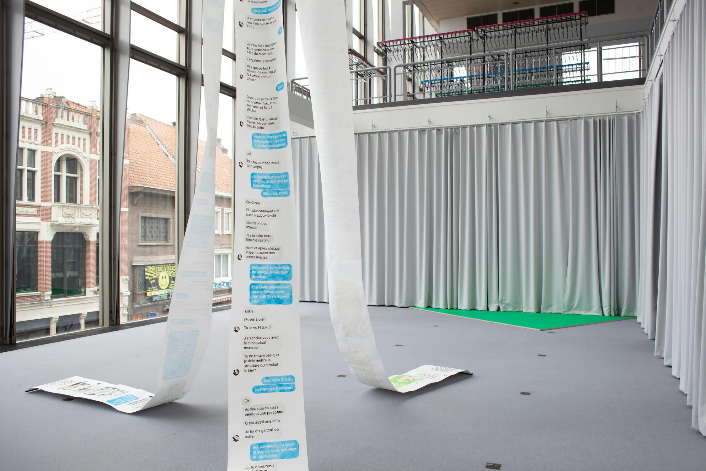 Lucile Desamory: Ha, hoe kom je daaraan? Ik herken het, maar twijfel tegelijkertijd. Het is geen dialoog uit een film, wel een fragment uit mijn correspondentie met Gustave Fundi en Glodie Mubikay. Natuurlijk, het komt uit mijn installatie MESSAGES, in 2019 getoond bij Netwerk Aalst! Het is een fragment uit onze intercontinentale communicatie.