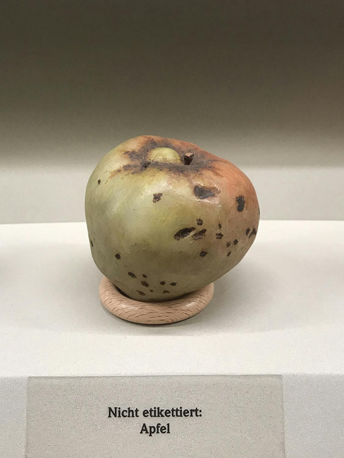 Tentoonstellingen, performances, interventies en voorstellingen zijn verspreid over de hele stad. Graz beschikt over een enorme culturele infrastructuur, en het festival maakt daar dankbaar gebruik van. In het barokke Palais Attems wordt de huisstijl van het festival voorgesteld, ontworpen door Grupa Ee met knipogen naar bourgeois esthetiek en Biedermeier-ornamenten. Op de eerste verdieping zie ik een onooglijk kleine installatie, een reeks van wassen appels gemaakt tussen 1815 en 1840 in het benedictijnenklooster van Admont onder toezicht van pater Constantin Keller. Ze lijken op die van het Parkhotel, alleen iets minder frisch en saftig. En minder uniform, want naast de verschillende kleuren, vormen en maten zijn de reproducties inclusief kurkstippen en verkleuringen ‒ cosmetische imperfecties die de huidige Stiermarkse fruitteelt niet langer tolereert. Wassen appels uit de 19de eeuw, moet het nog veel politieker worden?
